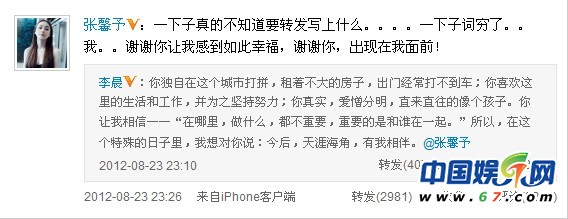 李晨七夕公開與張馨予戀情:天涯海角有我相伴(組圖)