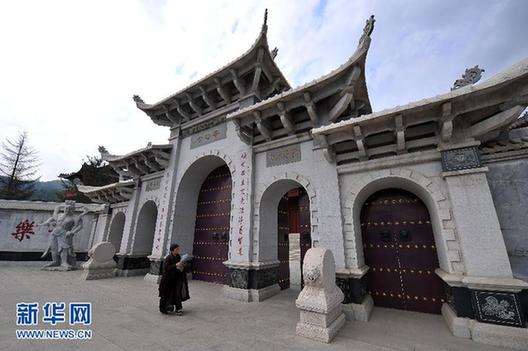 山西五臺山普壽寺尼眾佛學(xué)院大門(8月25日攝)。