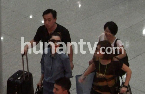 范冰冰回京經(jīng)紀人護駕 牛仔連身衣活像阿拉蕾(圖)