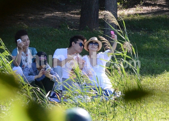李小璐挺大肚逛公園 賈乃亮嘟嘴配合愛妻自拍(組圖)