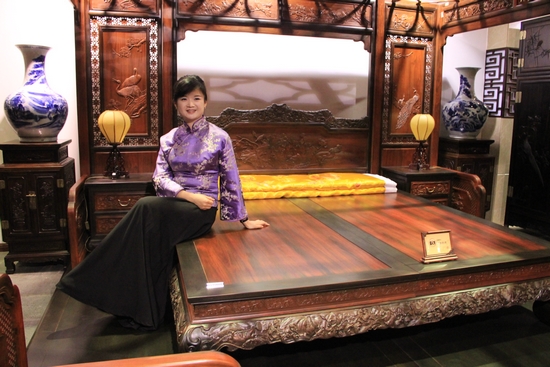 ????坐落于青島市家居文化中心,青島市敦化路,斥資上億元,經(jīng)營面積2千余平方米,裝修裝飾極具古典民族風(fēng)格。無論是規(guī)模實(shí)力、文化品位、產(chǎn)品及產(chǎn)業(yè)鏈優(yōu)勢,都代表了當(dāng)今紅木家具業(yè)的最高水平,也是全國最大、品種最全、檔次最高的紅木家具館之一。主營海南黃花梨、印度小葉紫檀、越南黃花梨、非洲大葉紫檀、老撾紅酸枝等名貴紅木家具和金絲楠木家具,真材實(shí)料、皇家工藝。館內(nèi)收藏了金緞水波紋金絲楠木八仙桌、檀香紫檀檀香床、千工拔步床、檀香紫檀四大美人頂箱柜檀香紫檀玉堂富貴屏風(fēng)等眾多紅木家具精品。