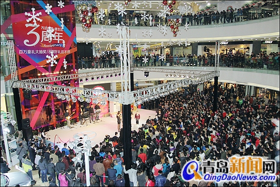 2012年11月25日晚,青島CBD萬(wàn)達(dá)廣場(chǎng)中庭人頭攢動(dòng),摩肩接踵。CBD萬(wàn)達(dá)廣場(chǎng)3周年慶“生日會(huì)暨年度大抽獎(jiǎng)”活動(dòng)正在這里舉行。炫彩的燈光,耀眼的舞臺(tái),一波波鼎沸的人聲,近萬(wàn)名顧客將現(xiàn)場(chǎng)渲染成了一個(gè)狂歡的Party,甚至有當(dāng)晚的現(xiàn)場(chǎng)顧客在微博中大贊道——“人鼓了,都來(lái)CBD萬(wàn)達(dá)集結(jié)吧”!