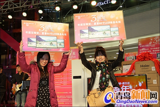 自抽獎(jiǎng)開(kāi)始,現(xiàn)場(chǎng)就一直被一波高過(guò)一波的分貝包圍和籠罩,樂(lè)隊(duì)也隨著大獎(jiǎng)抽取的緊張氣氛營(yíng)造激動(dòng)人心的配樂(lè)。中得大獎(jiǎng)的市民激動(dòng)不已,臉上洋溢著無(wú)限興奮,現(xiàn)場(chǎng)一位年輕的小伙幸運(yùn)中的I DO裸鉆一顆,并當(dāng)場(chǎng)送給了身邊的女朋友,兩人緊緊相擁,女友留下了幸福眼淚。而還未中獎(jiǎng)的市民依然翹首以盼?;顒?dòng)現(xiàn)場(chǎng)《快樂(lè)男聲》郭鵬還為市民帶來(lái)《想你的夜》《洋蔥》等一首首好聲音歌曲,讓市民大飽耳福。當(dāng)60寸LED電視、金條、iPad3及法式雙開(kāi)門冰箱等一波波重量大獎(jiǎng)陸續(xù)產(chǎn)生時(shí),人群更像一個(gè)巨大的火球,迸發(fā)出了強(qiáng)烈的能量,歡呼尖叫,將當(dāng)晚的活動(dòng)推至高潮!