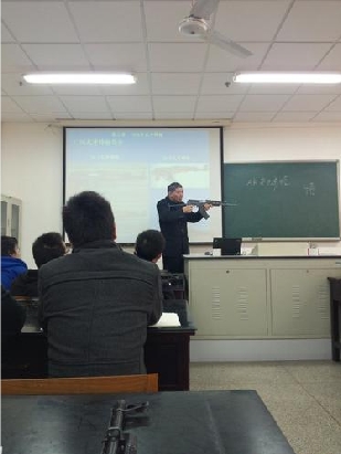 國內(nèi)某大學(xué)老師手持AK-47授課