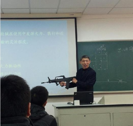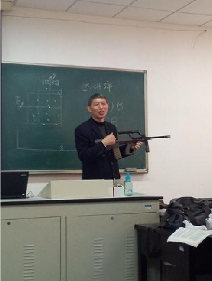 國(guó)內(nèi)某大學(xué)老師手持AK-47授課