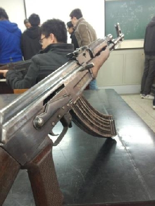 國(guó)內(nèi)某大學(xué)老師手持AK-47授課