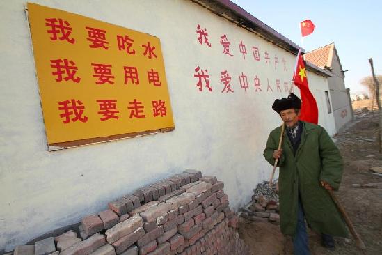 每天,紀慶玉都要面對國旗宣誓,他相信黨中央和中央人民政府不會忘記他們。他要活,他要生存。圖為12月10日,山東東營,東城沙營村六旬軍屬老人紀慶玉在自家四周巡邏。