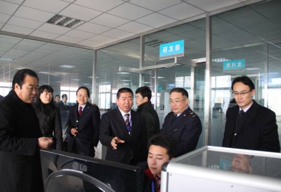 亨達股份董事長王吉萬(左一)陪同專家組的專家審核公司技術中心研發(fā)部