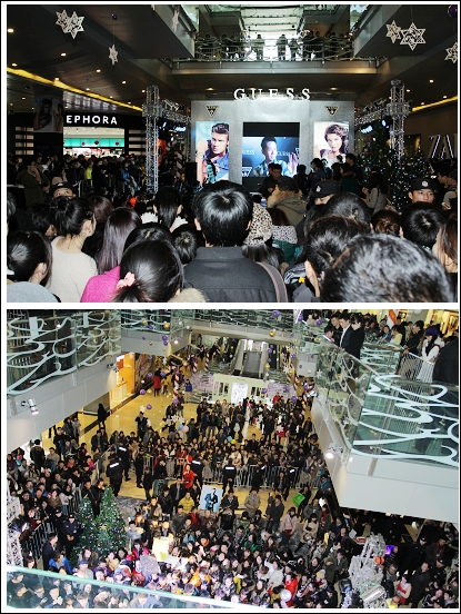 余文樂亮相青島百麗廣場(chǎng)GUESS Watches專柜粉絲“人滿為患”