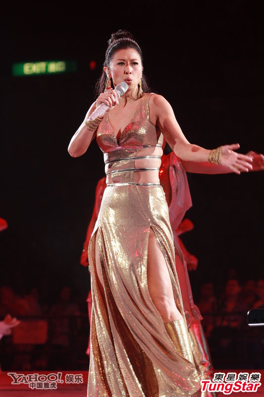 問到性感的造型是否得到林子祥批準?她笑著說:“他完全不知道,今天才第一次看,但我事先跟他提過,叫他不要被我嚇到,我覺得在臺