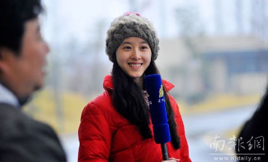 圖為“奶茶妹妹”做出鏡播報。 南報網(wǎng)記者 朱皓 杜文雙攝