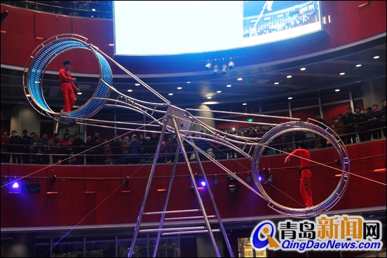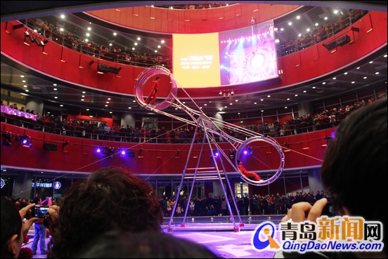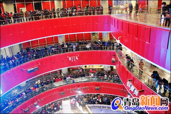 偉東?樂客城中心舞臺每天都會上演大型演出 典禮舉行之前,眾多賓客首先被開場大型驚險雜技《空中風(fēng)火輪》震撼,高難度的技巧、驚險的雜技藝術(shù)和視覺的震撼同時在樂客城從B1延伸至F4的中心舞臺上完美呈現(xiàn),幾乎令人產(chǎn)生置身劇場的錯覺。演出結(jié)束后,開業(yè)典禮正式開始,偉東集團(tuán)董事長王端瑞等領(lǐng)導(dǎo)以及來自華潤萬家山東區(qū)總經(jīng)理王景軍分別致辭;品牌代表C&A拓展總監(jiān)羅文致辭并接受媒體采訪時候表示C&A開店的選擇是非常慎重的,未來一年內(nèi)在青島將會有三家店開啟,最后的剪彩儀式上,當(dāng)舞臺中心的來賓將手中的紅色絲帶剪斷的同時,六支特制的彩色飛幕,瞬間從B1層飛升至F4層,寓意樂客城點(diǎn)亮未來時尚的多彩新生活。在五彩飛幕到達(dá)最頂端的瞬間,噴泉伴隨音樂瞬間噴射,整個儀式充滿了時尚、驚喜和絢麗。