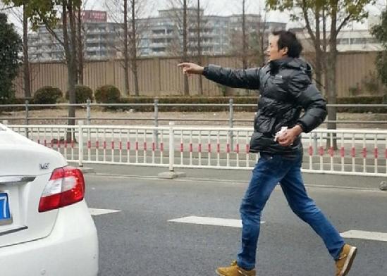 圖為2月3日,秦先生在事發(fā)現(xiàn)場(chǎng)追討錢款。