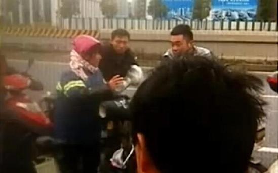 圖為2月3日,事發(fā)現場有三名環(huán)衛(wèi)工人將拾到的錢歸還給失主。