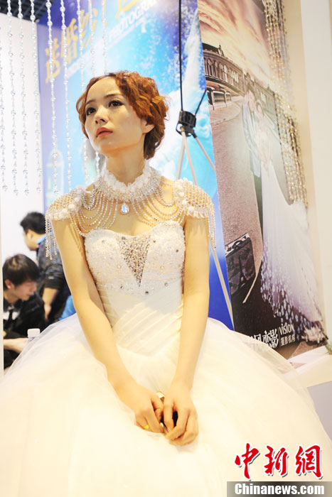 3月16日,2013年春季中國(北京)婚博會在國家會議中心開幕,現(xiàn)場靚麗“婚?!边M行展示,大秀性感。據(jù)悉,本次婚博會為期兩天,將于3月17日閉幕。(中新網(wǎng)記者張龍云 攝)