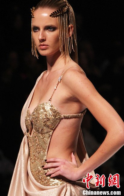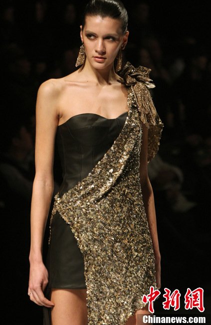 ????3月26日晚,正在北京舉行的中國國際時裝周(2013/2014秋冬系列)展演,主題為“云卷”時裝秀,以云的千變?nèi)f化展示女人多彩幻變的風(fēng)韻,以“蕓”式優(yōu)雅創(chuàng)造每一個人心目中的女神。圖為“云卷”時裝秀模特展示。中新社發(fā)錢興強(qiáng) 攝