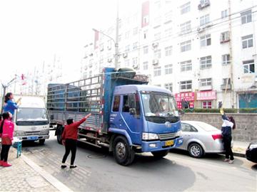 把水管鋪設(shè)完畢后,一名老師站在馬路中間,用一根竹竿將水管挑到半空中,而這時馬路兩側(cè)的老師也拿起工具,踩在凳子上,將水管掛在路兩旁的樹枝上,由于樹枝較高,掛水管時還用上了拖把等工具。固定好之后,水管橫跨在馬路上方,既能接水,也不影響過往車輛。老師們剛剛固定好水管,這時一輛大貨車緩緩駛來,車身近3米高,為了讓大貨車通行,路兩側(cè)的老師再次爬到板凳上,拿著拖把、木棍等使勁向上挑,不過任憑怎么挑高,仍無法讓貨車通行。 “不行,先拆下來吧!”老師們無奈地把固定好的水管慢慢卸下,抽到馬路一旁,待大貨車通行以后,再重新固定。