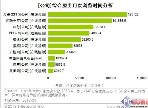 ????艾瑞IUT4月月度視頻網(wǎng)站最新統(tǒng)計數(shù)據(jù)出爐。綜合服務(wù)月度瀏覽總時間愛奇藝PPS、優(yōu)酷土豆合并之后綜合計算數(shù)據(jù),居第一、第二位,風(fēng)行網(wǎng)位列第三。人均月度瀏覽時間風(fēng)行網(wǎng)遙遙領(lǐng)先,遠(yuǎn)超排行第二的愛奇藝PPS,且是第四名優(yōu)酷土豆人均瀏覽時間的兩倍以上。