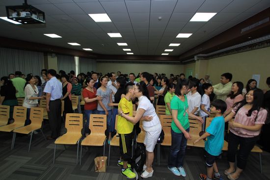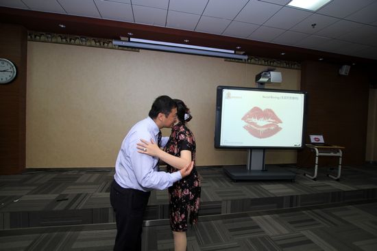 國際禮儀大師青島示范親吻禮 觀眾很羞澀