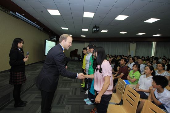 青島新聞網(wǎng)6月28日訊 見面禮儀、握手禮儀、社交禮儀……通過了解禮儀到了解英國文化,昨天下午,國際頂級(jí)的禮儀大師威廉?漢森來到青島孔裔(牛津)國際公學(xué),帶來最純正的禮儀盛宴,讓聽眾領(lǐng)略了真正的皇家貴族風(fēng)范。
