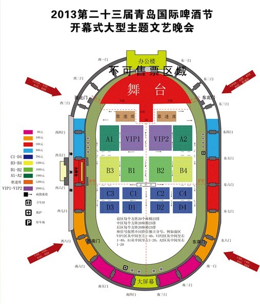 ??? 票價分為:VIP:2880元;歌迷席:1280元;內(nèi)場票為:1980元、1680元、1280元、780元、看臺票為:480元、380元、180元、80元。
