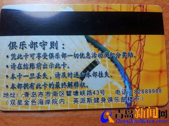 對(duì)于后續(xù)的維權(quán)事宜,談先生表示:“我們幾個(gè)會(huì)員曾打過12315,還有12345之類的投訴熱線,協(xié)調(diào)結(jié)果總是羽毛球館老板與英派斯、雙星三方需要協(xié)商處理,我們也找過市南區(qū)臺(tái)西路工商所反映情況,他們也只是各方協(xié)調(diào),事情至今沒什么進(jìn)展?!闭勏壬f道,本來協(xié)調(diào)結(jié)果是等新館開業(yè)后,原有會(huì)員全部入駐繼續(xù)消費(fèi),但現(xiàn)在新館開業(yè)已半年,依舊未有進(jìn)展,而英派斯也曾接管過羽毛球館的電腦,統(tǒng)計(jì)過老會(huì)員信息及卡內(nèi)余額,而統(tǒng)計(jì)后便再次杳無音訊。