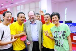 今年3月,沙拉拉特地出席了黃金爭霸賽的開球儀式,他更“厚著臉皮”向主辦方討黃金。昨天,他的“突襲”讓正在參賽的選手驚喜不已,大家爭相上前索要合影,現(xiàn)場一度失控。即使今年5月在巴黎世乒賽期間成功連任之后,沙拉拉也沒有得到這種眾星捧月般的待遇?!摆A比賽送黃金的創(chuàng)意太棒了,我認(rèn)為可以在其他國家推廣。我也想組委會送點(diǎn)黃金給國際乒聯(lián),最好一公斤?!碑?dāng)沙拉拉發(fā)現(xiàn)昨天的參賽者當(dāng)中有3名外國選手,其中一位更來自他的老家加拿大,他相當(dāng)驚喜,上前與這3名年輕的參賽者聊了起來?!八麄円仓涝诟呤秩缭频膹V州是贏不了的,但他們告訴我,最重要是參與,一個比賽能吸引到外國的選手慕名而來,那就是非常成功的?!?/p>