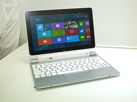 ???? ????在外觀設(shè)計(jì)方面,HP ENVY X2向用戶展現(xiàn)了大廠的“用心”,精細(xì)的做工、出色的拉絲紋理工藝和鋁合金材質(zhì)外殼讓整機(jī)富有藝術(shù)氣質(zhì)。由于并非純娛樂產(chǎn)品,HP ENVY X2的機(jī)身尺寸要比普通的平板電腦大一些。在平板電腦模式下,裸機(jī)重量約為680克,三圍尺寸為302毫米×190毫米×7.6毫米,可以輕松放進(jìn)一般的背包中。在增加鍵盤底座之后,HP ENVY X2是一個(gè)標(biāo)準(zhǔn)的超極本尺寸,重量增加到1400克,便攜性明顯下降。因此,在不需要移動(dòng)辦公的情況下外出,最好將鍵盤底座存放在家中。 ????稱之為平板筆記本的HP ENVY X2是真正的電腦,各項(xiàng)配置接近于入門超極本的水平。HP ENVY X2采用主頻為1.8GHz的Intel Atom Z270雙核處理器,與之匹配的是2GB運(yùn)行內(nèi)存組成,但機(jī)身內(nèi)置64GB存儲(chǔ)器,用戶自主支配空間比較小,整體性能可以確保Windows8操作系統(tǒng)流暢運(yùn)行。HP ENVY X2采用前置720P高清攝像頭+后置800萬像素?cái)z像頭的拍攝組合,前置攝像頭表現(xiàn)一般,后置攝像頭可以提供清晰的成像質(zhì)量。???? ????編輯點(diǎn)評(píng): ????HP ENVY X2將平板電腦和超極本融為一體,如果將這樣一款產(chǎn)品當(dāng)做禮物送出去,就相當(dāng)于同時(shí)送給對(duì)方一臺(tái)平板電腦和一臺(tái)超極本,可謂一舉兩得。 ????推薦產(chǎn)品:宏碁Iconia W700 ????就在各家廠商紛紛表示會(huì)跟隨微軟的腳步推出自己的win8產(chǎn)品之時(shí),宏碁這個(gè)PC業(yè)內(nèi)的急先鋒也不甘落后推出了Iconia W700。????