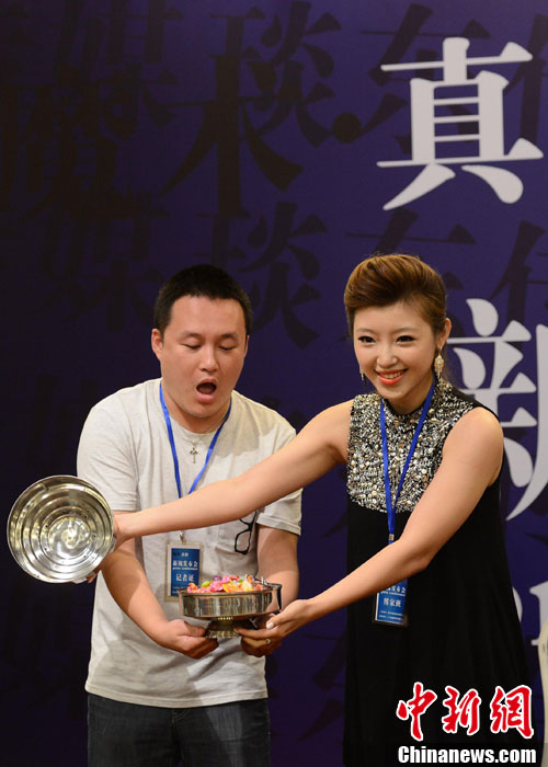 8月1日,著名魔術(shù)家傅騰龍率“傅家班”眾弟子亮相北京,舉行“真相”新聞發(fā)布會。徐越、華珊珊、王璐、伊浩等眾魔術(shù)師現(xiàn)場表演魔術(shù),還原所謂“特異功能”的真相。傅騰龍為掌門人的傅氏幻術(shù)已歷經(jīng)五代,其子傅琰東更是為觀眾所熟知。圖為美女魔術(shù)師王璐表演“空盆變糖”,驚呆一旁見證的記者。中新社發(fā) 李學(xué)仕 攝