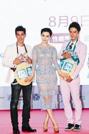 劇中,兩位帥哥爭相搶著要當范冰冰飾演的“米雪”肚子里孩子的爸爸,而在發(fā)布會現(xiàn)場,李治廷和蔣勁夫為了奪得美女芳心,挺著“大肚子”過了一把超級奶爸癮。