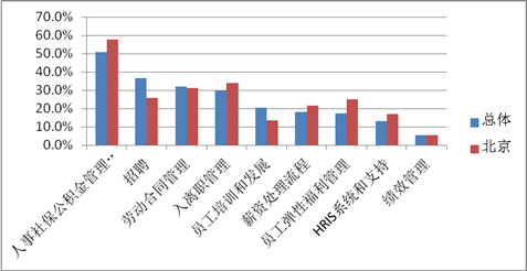 ?????? 從企業(yè)HR部門的傾向工作來看,除了傳統(tǒng)的人事社保公積金管理和繳納、招聘,入離職及勞動合同管理方面企業(yè)會優(yōu)先選擇外包之外,企業(yè)對員工培訓(xùn)和發(fā)展外包、薪酬及財務(wù)外包、彈性福利外包、人力資源系統(tǒng)和支持外包等多個領(lǐng)域的服務(wù)需求,都將成為人力資源流程外包領(lǐng)域發(fā)展的新趨勢。(如圖7)
