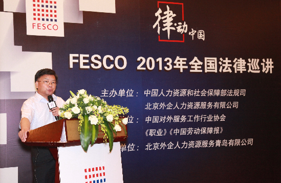 ?????? 2013年8月9日,由人力資源和社會保障部(人社部)法規(guī)司、北京外企人力資源服務有限公司(FESCO)聯(lián)合主辦的“‘律·動中國’FESCO 2013年全國法律巡講” 活動第十五站在青島頤中皇冠假日酒店隆重舉行,人社部法規(guī)司余明勤副司長出席了此次活動,并與FESCO資深法律專家針對7月1日開始實施的《勞動合同法》修正案以及用工單位關心的熱點問題進行了深度的解析,對企業(yè)在法律政策實際應用中遇到的問題給予了分析和解讀,為企業(yè)管理者的實際工作提供了最權(quán)威的指導和建議。來自青島的100余家中外企業(yè)的人力資源總監(jiān)或經(jīng)理出席了活動。