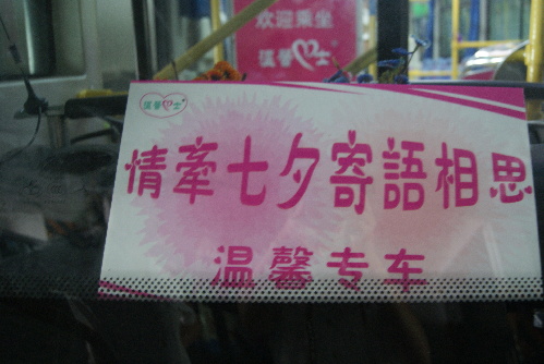 ????今天,一年一度的七夕節(jié)又來臨。在匯泉廣場(chǎng)旁,一輛特殊的31路溫馨巴士車??吭谑及l(fā)站。