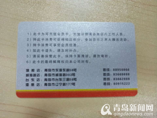 ????王女士說道:“之前先打電話咨詢過,音樂之聲KTV說,我這種會員卡必須晚上來用,工作日和白天都不能使用。然后上周末,我正想約朋友們出去放松一下,就想起這張音樂之聲KTV港麗店內(nèi)含1000元的充值會員卡,便晚上約朋友一起去了。到前臺開房間時,我先出示了我的卡,然后服務(wù)員問我卡里是否有錢,我說有并建議她查查看,她說系統(tǒng)里看不到我這張卡的信息,非要等到結(jié)賬時才能看,我以為這就是規(guī)定,就先進(jìn)了房間?!?/font>