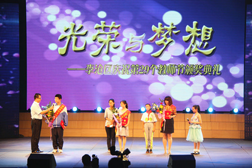 ????9月10日上午,李滄區(qū)慶祝第29個(gè)教師節(jié)頒獎典禮在李滄劇院隆重舉行,區(qū)領(lǐng)導(dǎo)戴玉環(huán)、鄭海濤、張衛(wèi)星出席典禮,區(qū)直各部門、各街道主要負(fù)責(zé)人,全區(qū)各中小學(xué)、幼兒園主要負(fù)責(zé)人,部分區(qū)人大代表和政協(xié)委員,教師代表、家長代表等千余人參加了活動。