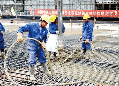 ????昨日下午,記者來(lái)到位于李滄區(qū)太原路垃圾填埋場(chǎng)內(nèi)的施工現(xiàn)場(chǎng)時(shí),工人們正在進(jìn)行緊張的頂板澆注?!暗罔F火車(chē)北站深基坑全部采用明挖工法施工,這個(gè)站有兩個(gè)明顯的特點(diǎn)。”中鐵二局青島地鐵火車(chē)北站項(xiàng)目部書(shū)記黃超林介紹說(shuō),一是地鐵火車(chē)北站是青島市地鐵線網(wǎng)中工程規(guī)模最大、換乘地鐵線路最多、換乘交通方式最多、設(shè)計(jì)及施工最為復(fù)雜的車(chē)站。二是工程施工場(chǎng)地為沿海灘涂,具有技術(shù)難度大、工期緊、深基坑工程安全風(fēng)險(xiǎn)高、交叉作業(yè)干擾大、工序轉(zhuǎn)換頻繁、資源投入集中等特點(diǎn),任務(wù)艱巨而又繁重。
