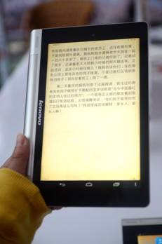 ????雙十一在即,蘇寧發(fā)布會(huì)現(xiàn)場(chǎng)也熱鬧非凡。一段激情的“YOGA舞”過(guò)后,YOGA平板正式登場(chǎng)。另類(lèi)、手感圓滑、極具科技感,是YOGA平板拿在手中的第一印象。當(dāng)然,最具爭(zhēng)議的還是那個(gè)卷軸設(shè)計(jì),雖然看起來(lái)有點(diǎn)另類(lèi),但細(xì)想一下真的很實(shí)用:想象一下原來(lái)用平板的樣子,手持平板操控時(shí),時(shí)間一長(zhǎng)手腕容易疲勞;配上輔件平板才能站立,且不能隨意調(diào)節(jié)角度;平放在桌面上時(shí)視角不佳,輸入不便。而聯(lián)想就是針對(duì)這些操作痛點(diǎn),推出了這款具有多種使用模式的平板電腦:閱讀、站立、觸控三種模式,各具特色。 ????閱讀模式: