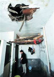 ????“夏天西曬,家里熱得坐不住人,冬天在屋里穿著棉衣還覺著冷?!奔易∪嗣衤?62號(hào)的江女士告訴記者,她現(xiàn)在住的這個(gè)筒子樓是1958年建的,房屋居住面積不到15平方米,只有一扇朝西的窗戶,家里完全不透氣。因?yàn)闆]有做飯的位置,江女士在不到1米寬的樓梯過道中,用木板間隔起一個(gè)面積不到0.3平方米的狹小空間,當(dāng)廚房使用?!斑@么小的空間,連個(gè)煤氣罐都放不下,30多年來,我家都是用一個(gè)小電熱爐做飯。江女士家住在頂樓,和其他鄰居一樣,因?yàn)槌D曷┯辏蓓敽蛪γ骈L(zhǎng)了綠色的霉菌。整層樓公用的衛(wèi)生間和走廊的屋頂破了許多大洞,都能看到天空。據(jù)介紹,瑞昌路三角地片區(qū)改造拆遷,臨時(shí)過渡期為36個(gè)月,也就是說,拆遷后的居民3年后就能住進(jìn)新套房。