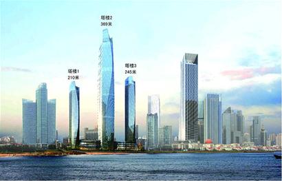 ????此次公布規(guī)劃的主要是該項目一期工程的建設(shè)內(nèi)容,建設(shè)地點為市南區(qū)香港西路以南、萬麗海景以東、東海西路以北、順峰酒店以西。一期工程由三座塔樓及底層4層的商業(yè)裙房組成。其中,主樓高達369米,刷新青島高度,堪稱“青島第一高樓”。其余兩座建筑高度分別為245米、210米。擬建設(shè)集酒店、商務(wù)辦公、商業(yè)、酒店式公寓于一體的城市酒店旅游綜合體。