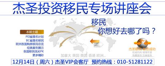 ??????? 針對2014年投資移民新政,杰圣集團(tuán)將推出專場說明會,為廣大投資移民申請人答疑解惑,選擇最為合適的項目。屆時,北京因私出入境中介機(jī)構(gòu)協(xié)會會長、杰圣集團(tuán)總裁兼首席顧問齊立新先生將親臨講解,敬請關(guān)注!