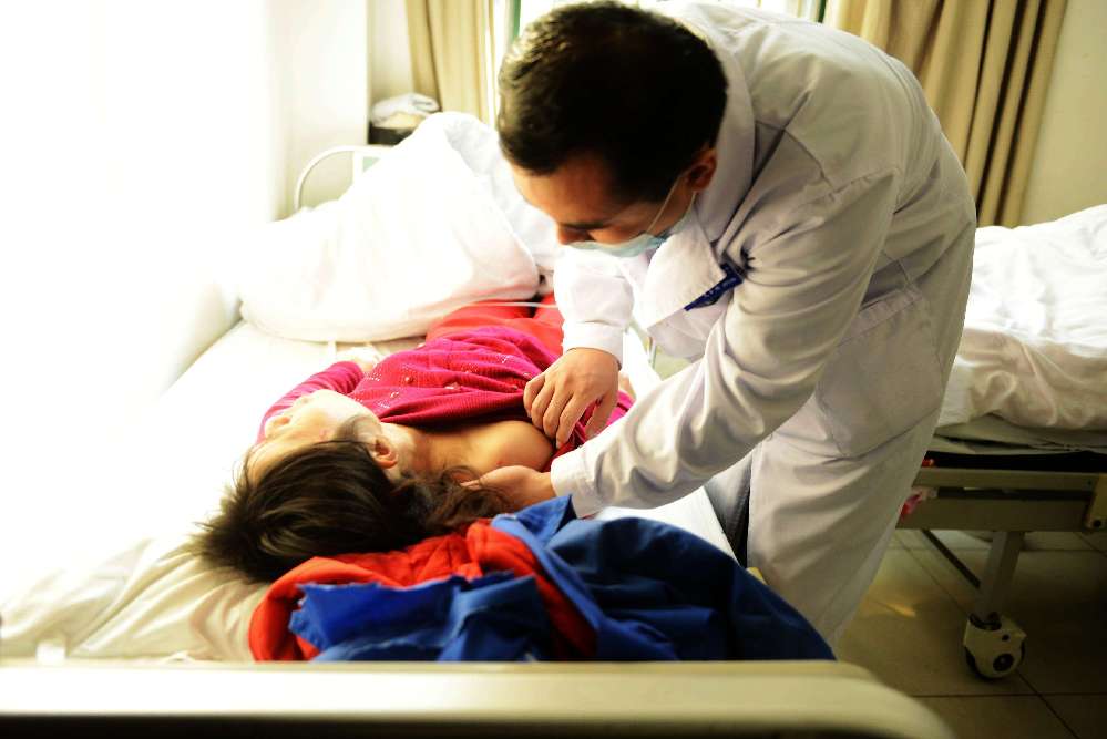 11月22日,山東青島開發(fā)區(qū)第一人民醫(yī)院醫(yī)生為一位管道爆燃事故受傷人員檢查。 新華社發(fā)