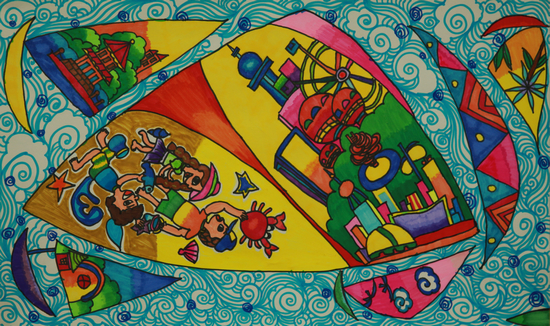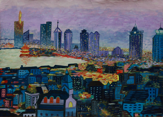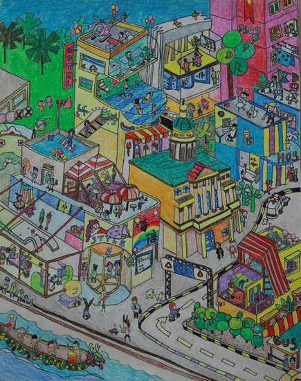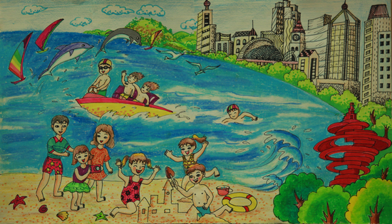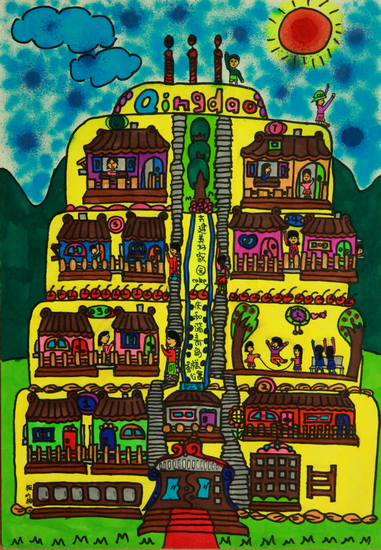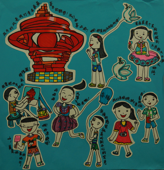 ??? 記者在現(xiàn)場(chǎng)看到,參賽作品緊密結(jié)合“中國(guó)夢(mèng)·幸福青島”主題,用稚嫩的筆觸,對(duì)孩子們心目中的“青島”、“幸福”、“夢(mèng)想”做了獨(dú)特詮釋。許多作品很好的結(jié)合了青島的風(fēng)光、人文,甚至熱門(mén)話題事件。其中,青島啤酒、帆船之都、五月的風(fēng)、老街、天主教堂,成為許多作品里出現(xiàn)的意象,但描繪方式極其豐富多樣,表現(xiàn)出孩子們濃濃的童趣和天馬行空的想象力。