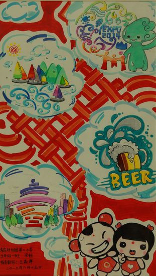 ??? 今年大賽的特色之一是許多作品將2014年將在青島舉辦的世界園藝博覽會(huì)元素融入其中,通過(guò)描繪可愛(ài)的吉祥物“青青”、青島世園會(huì)會(huì)徽、綠色大自然等,表達(dá)了孩子們對(duì)青島世園會(huì)的熱切期待,對(duì)自然的純真向往,以及對(duì)家園發(fā)自?xún)?nèi)心的熱愛(ài)。