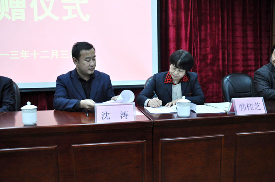 ????儀式上,韓桂芝理事長(zhǎng)和沈濤董事長(zhǎng)分別代表校企雙方在捐贈(zèng)協(xié)議書(shū)上簽字。宋明岐總裁將100萬(wàn)元人民幣的捐贈(zèng)牌轉(zhuǎn)交給韓桂芝理事長(zhǎng)。為了表示學(xué)校的誠(chéng)摯謝意,韓桂芝理事長(zhǎng)向宋明岐總裁頒發(fā)了捐贈(zèng)證書(shū)。