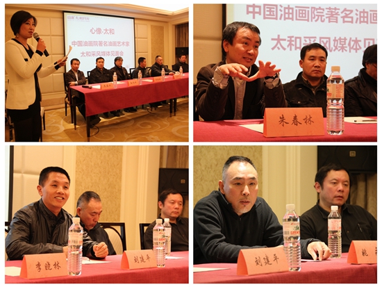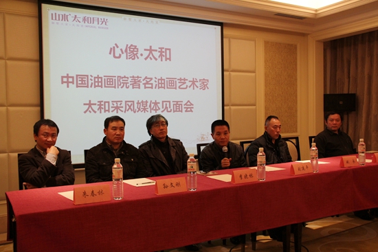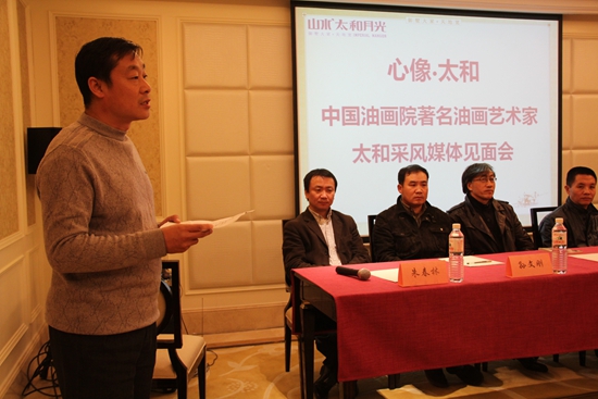 青島山水太和月光、太和藝術(shù)館主辦方嘉賓致辭 ????由青島山水太和月光、太和藝術(shù)館 主辦的“心像?太和——青島首屆中國(guó)繪畫名家寫生邀請(qǐng)展”于2013年12月8日下午,在太和藝術(shù)館拉開(kāi)帷幕。由中國(guó)油畫研究院劉建平、李曉林、姚永、孫文剛、徐曉東、朱春林、常磊等藝術(shù)家組成的嶗山采風(fēng)寫生團(tuán)抵達(dá)夏莊風(fēng)景區(qū),同時(shí)到場(chǎng)畫家與藝術(shù)愛(ài)好者們親切交流并分享經(jīng)驗(yàn),并于山水太和月光周邊景區(qū)進(jìn)行寫生創(chuàng)作。