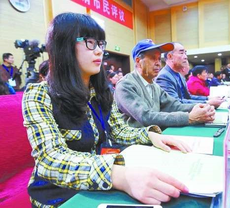 ????在市南區(qū)分會場,205名市民代表正在聚精會神地聽取報告,每個人面前的桌子上都有一張評票,上面針對每個述職部門都對應(yīng)著1~4分的評分。會場前面,就是2個巨大的投票箱,等市民代表將票全部投入后,就可以統(tǒng)計分?jǐn)?shù)了?!澳鼙贿x上市民代表我感覺很幸運,跟中了彩票似的?!苯衲?5歲的張曉洲是青島職業(yè)技術(shù)學(xué)院退休老師,從報紙上看到可以報名的信息后,去年12月初她就上網(wǎng)報了名,但是從來沒想過能被選上,去年12月底,她收到了相關(guān)部門打來的電話,把她高興壞了,并針對在日常生活中的所見所聞,擬定了兩條關(guān)于環(huán)保方面的意見和建議,“公交車旁邊的花壇其實對于行人來說不太方便,尤其人多的時候容易擁堵,建議去除公交車站旁邊的小花壇?!贝送猓嬖V記者,自己對醫(yī)療報銷等方面的內(nèi)容比較關(guān)心。