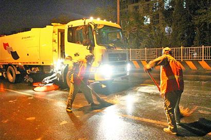 ????11月3日晚9時,一輛貨車途經(jīng)青山路附近時,十幾桶涂料從車上跌落、破損,給路面造成嚴(yán)重污染,環(huán)衛(wèi)公司聞訊后立即趕往現(xiàn)場進(jìn)行清理……為鞏固世園會閉幕后的環(huán)境衛(wèi)生管理水平,李滄區(qū)繼續(xù)實行常態(tài)化長效管理機(jī)制,繼續(xù)保持應(yīng)急保障機(jī)制,保障全區(qū)環(huán)境衛(wèi)生質(zhì)量。