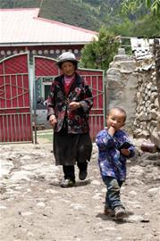 ????赤列嘉措的家在一個(gè)半山坡上,穿過木頭做成的柵欄門,一眼就看見了孩子的爺爺坐在屋前轉(zhuǎn)著手里的轉(zhuǎn)經(jīng)筒,嘴里念叨著什么,可能是在祈福,對(duì)遠(yuǎn)方到來的好心人充滿憧憬,憧憬能幫幫他的孫子。赤列嘉措的父母和奶奶在屋里拿出了家里最好的奶酪和酥油茶招呼大家。