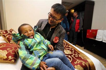 ????下飛機(jī)后,微塵基金給小嘉措安排了一頓豐盛的晚宴,飯桌上小家伙很快適應(yīng)起來,先是調(diào)皮吐著舌頭,慢慢就開始調(diào)皮起來,滿房間轉(zhuǎn)悠。吃過晚飯,將三人送到安排好的賓館。這時(shí)候,幾名愛心人士也帶著禮物趕來送給小嘉措。