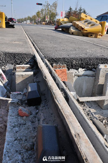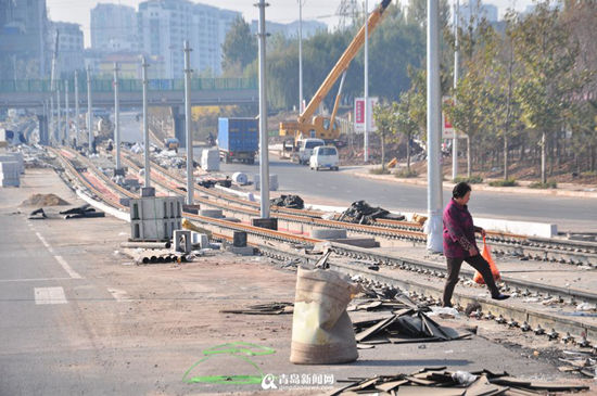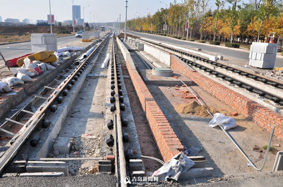 ????距離12月20日試跑僅剩一個月,城陽有軌電車鋪軌工程仍在緊張進行中。記者昨日在現(xiàn)場看到,全長8.77公里的軌道線上施工進度差異很大,天安數(shù)碼城段目前已開始栽植草坪,進入了最后收尾階段,而其余絕大部分路段目前仍有大量工程未完工。